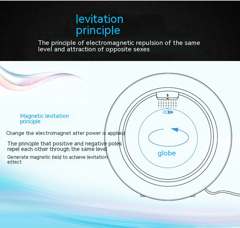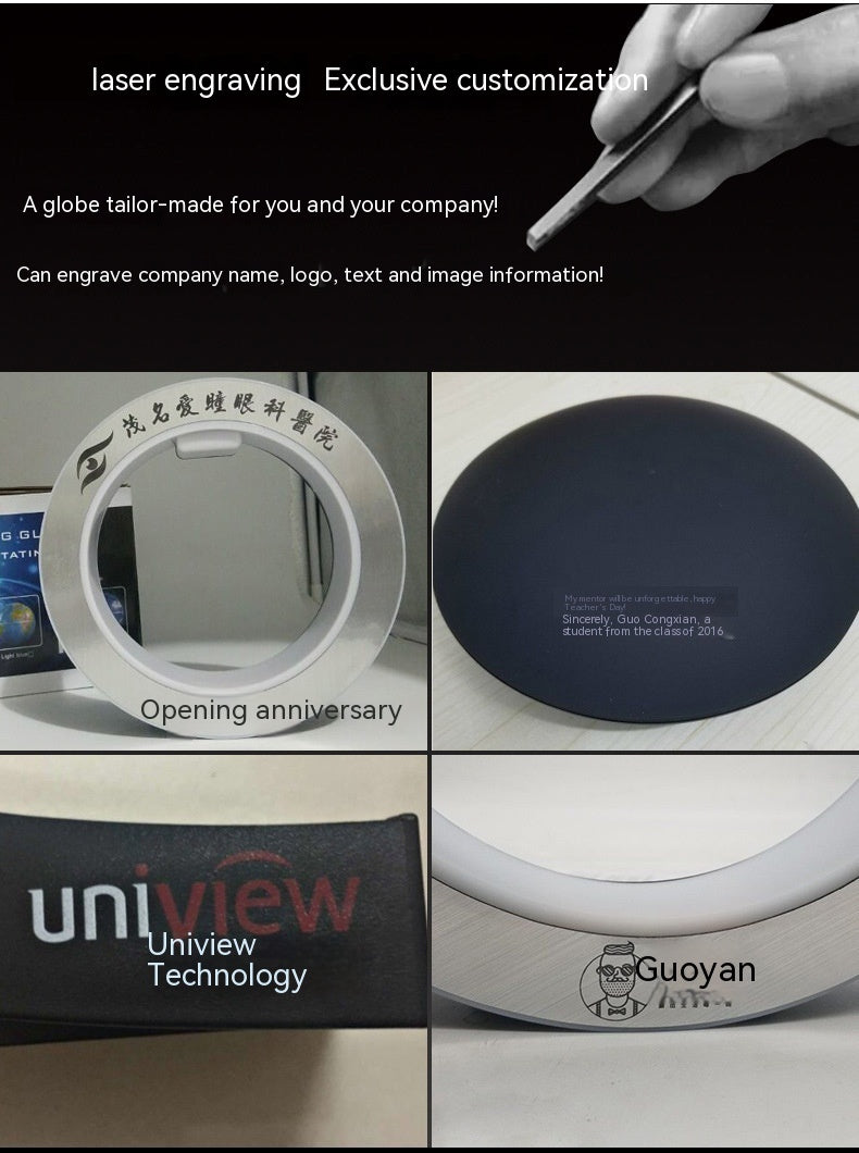 Funciones: Este modelo ofrece suspensión magnética, rotación de 360°, iluminación LED en las variantes con luz y un efecto decorativo ideal para hogares, oficinas y espacios creativos.