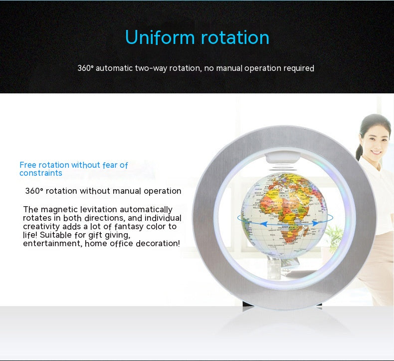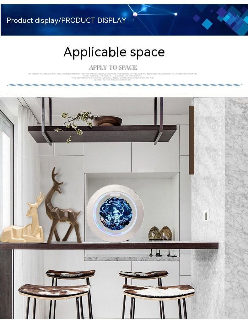 Gracias a su sistema de suspensión magnética y a su estabilidad rotatoria, este dispositivo ofrece una sensación de ligereza casi mágica. Es ideal para oficinas, salas de estudio o espacios creativos donde el objetivo es inspirar y sorprender. A diferencia de otras piezas decorativas, su movimiento silencioso, la iluminación suave y la estética futurista hacen que destaque sin competir con el entorno, reforzando la armonía visual y generando conversación entre todos los que lo ven.