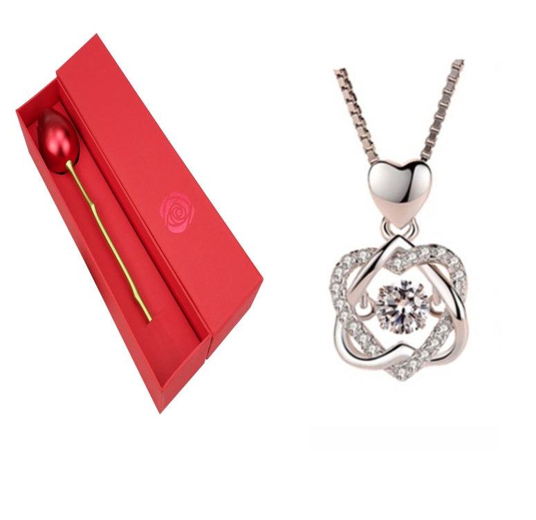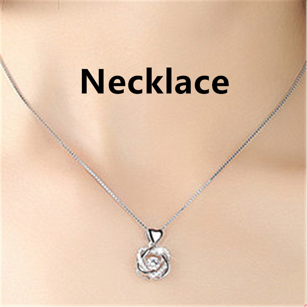 Variantes: El producto está disponible en múltiples estilos para adaptarse a diferentes preferencias: Blue Necklace, Blue Necklace Set, Picture Color, Rose Gold Necklace, Rose Gold Necklace Set, Rose Gold Pendant, Rose Gold Pendant Set, Rose Gold Chain, White Gold Necklace, White Gold Necklace Set, White Gold Pendant, White Gold Pendant Set y White Gold Chain. Cada variante mantiene el mismo acabado metálico refinado y está diseñada para presentar joyas de forma elegante y delicada.